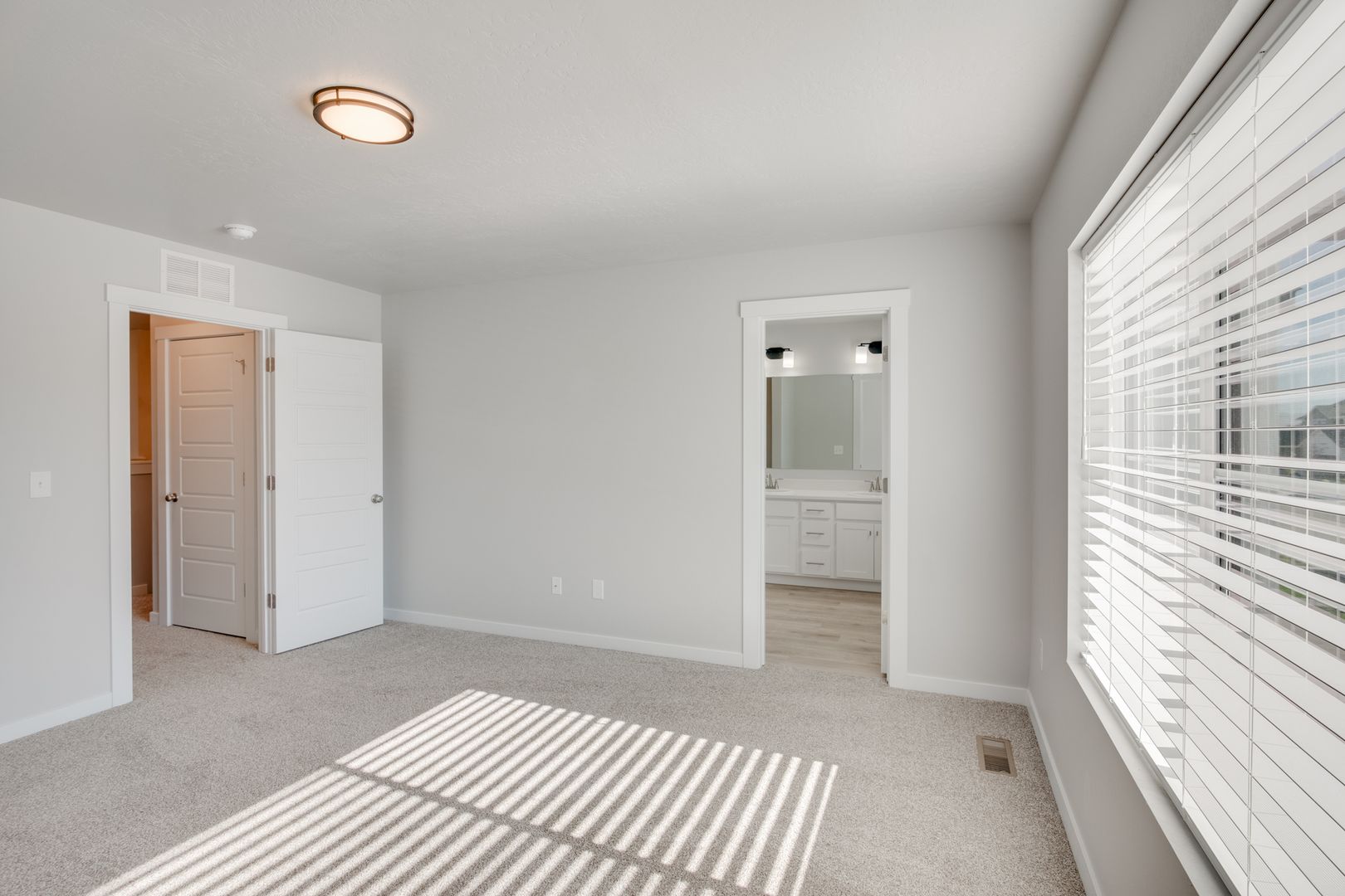 Upstairs the master bedroom and bath is separate from the other two bedrooms to maximize privacy. The master bedroom also has a walk-in closet; and a spacious bathroom with double sinks.