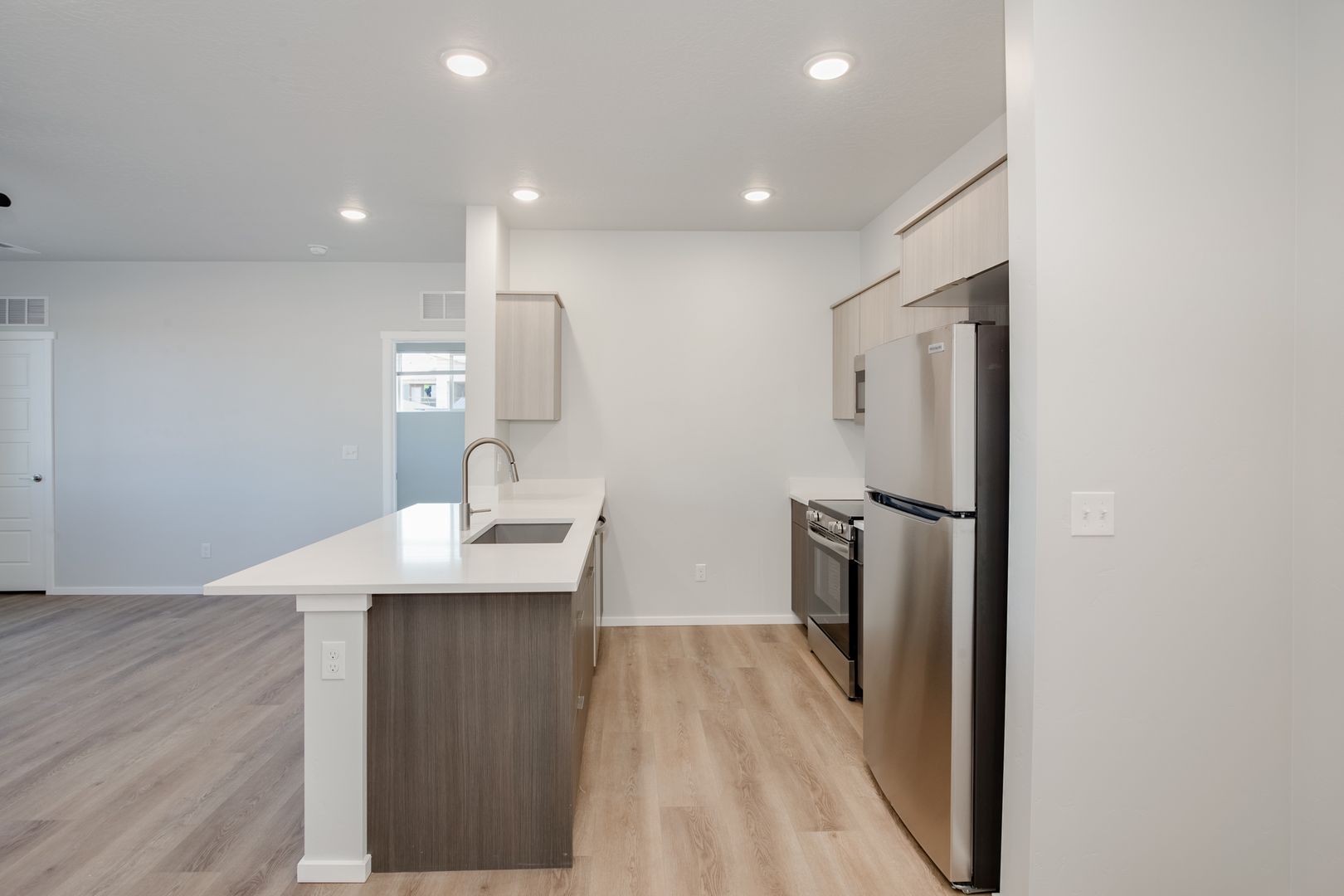 The open-concept kitchen/living room layout is ideal for entertaining guests. Just off the living space, you'll find access to your own enclosed, large private patio with storage.