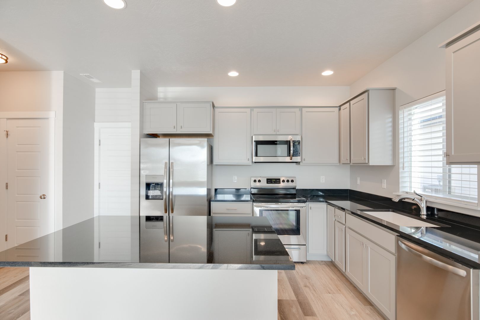 This two story townhome has stainless steel appliances, a large kitchen island, a large pantry, storage closets, and a half bath all downstairs! Upstairs you will find three bedrooms including a spacious master with a walk-in closet and a laundry room with a full size washer and dryer!