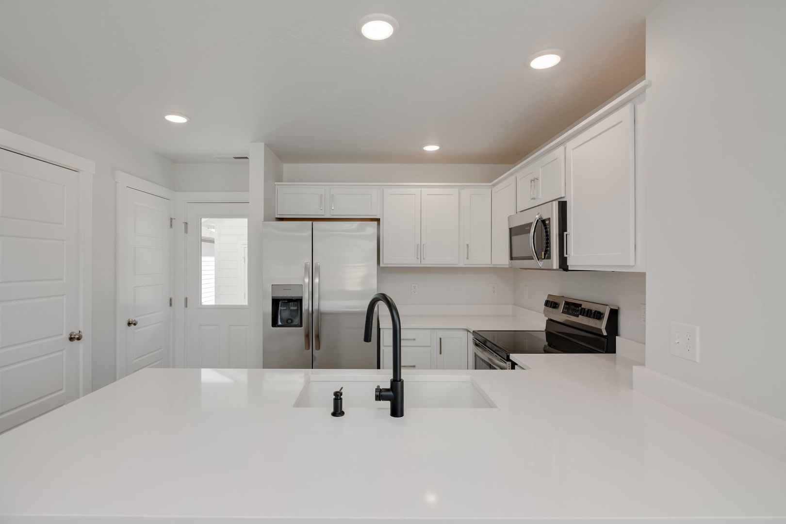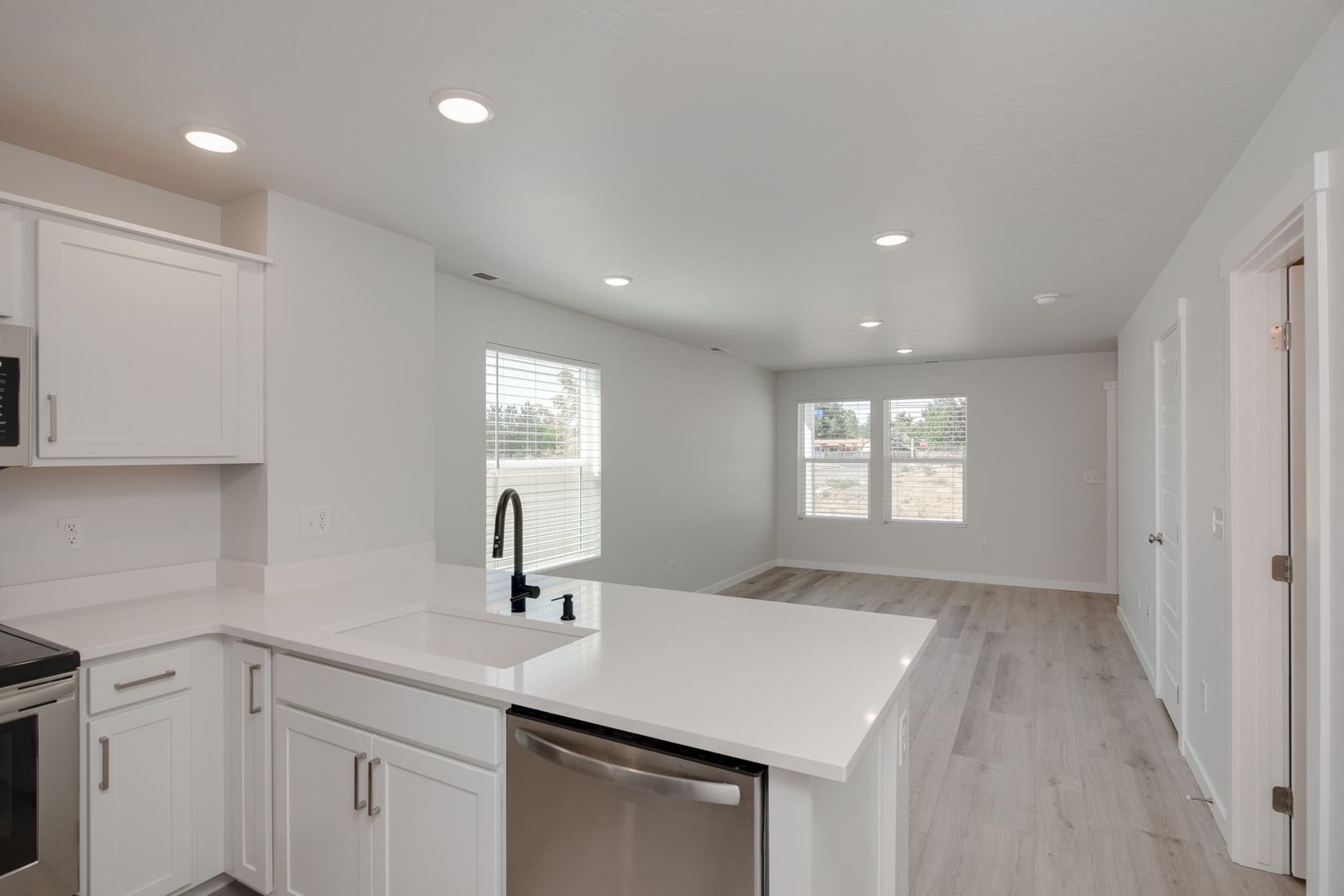 Step inside this modern cottage and into an open-concept floor plan. This home is adorned with stunning fixtures that create a bright, new atmosphere. The kitchen features stainless steel appliances, beautiful cabinetry, and quartz countertops.