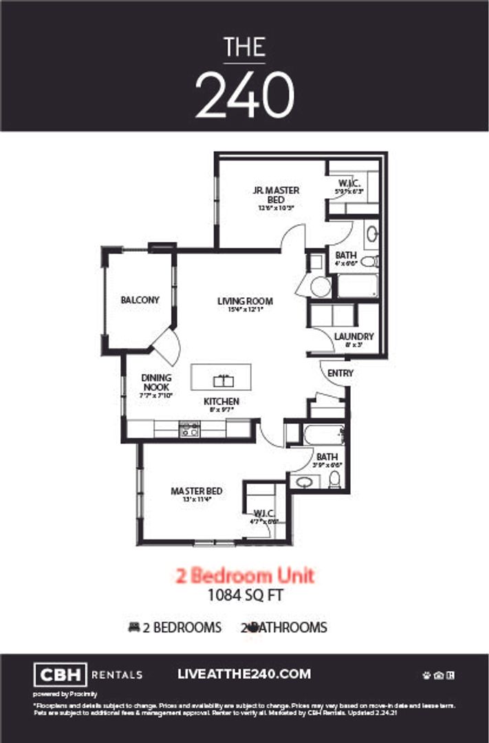 Let The 240 Apartment Community WOW you with their 2 bedrooms/2 bathrooms apartment homes.