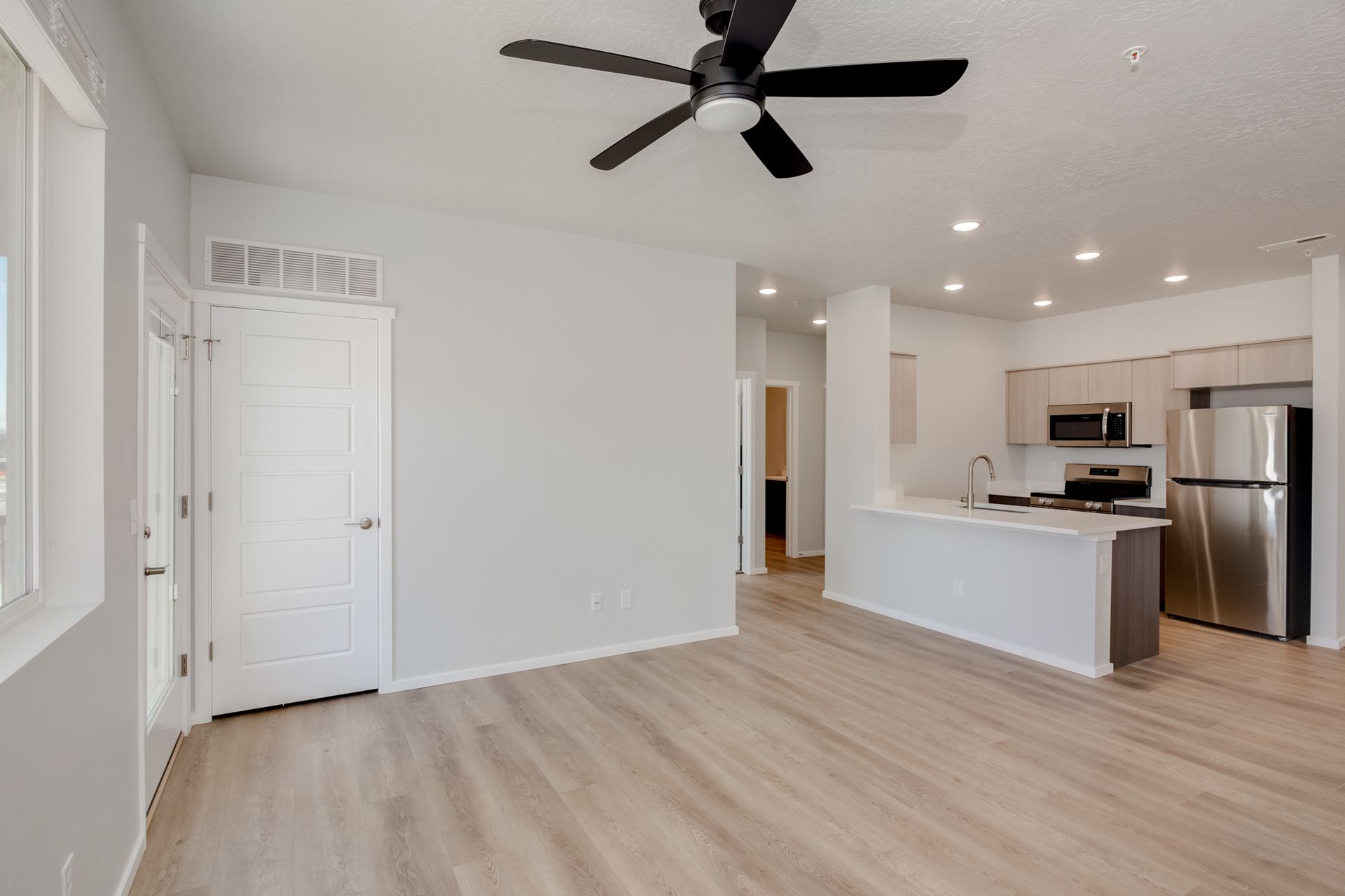 The open-concept kitchen/living room layout is ideal for entertaining guests. Just off the living space, you'll find access to your own enclosed, large private patio with storage.