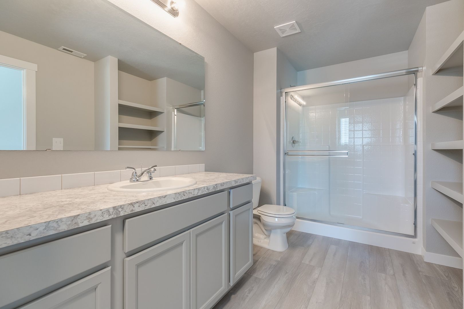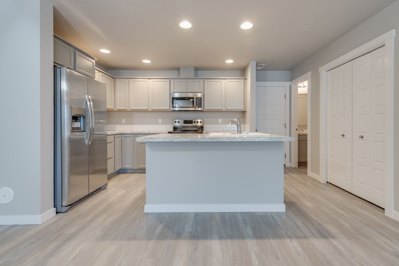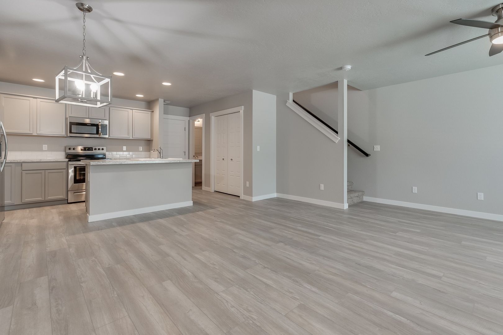 You will love coming home to modern finishes throughout; the kitchen has pretty grey cabinets, an abundance of countertop space; and it sports stunning stainless steel appliances. There is a full size washer and dryer located upstairs for laundry convenience plus the laundry room has a folding counter!; a functional floor plan for privacy has split the large master bedroom/bathroom from the other two bedrooms. Closet and storage space is plenty huge for your needs, you will love it!