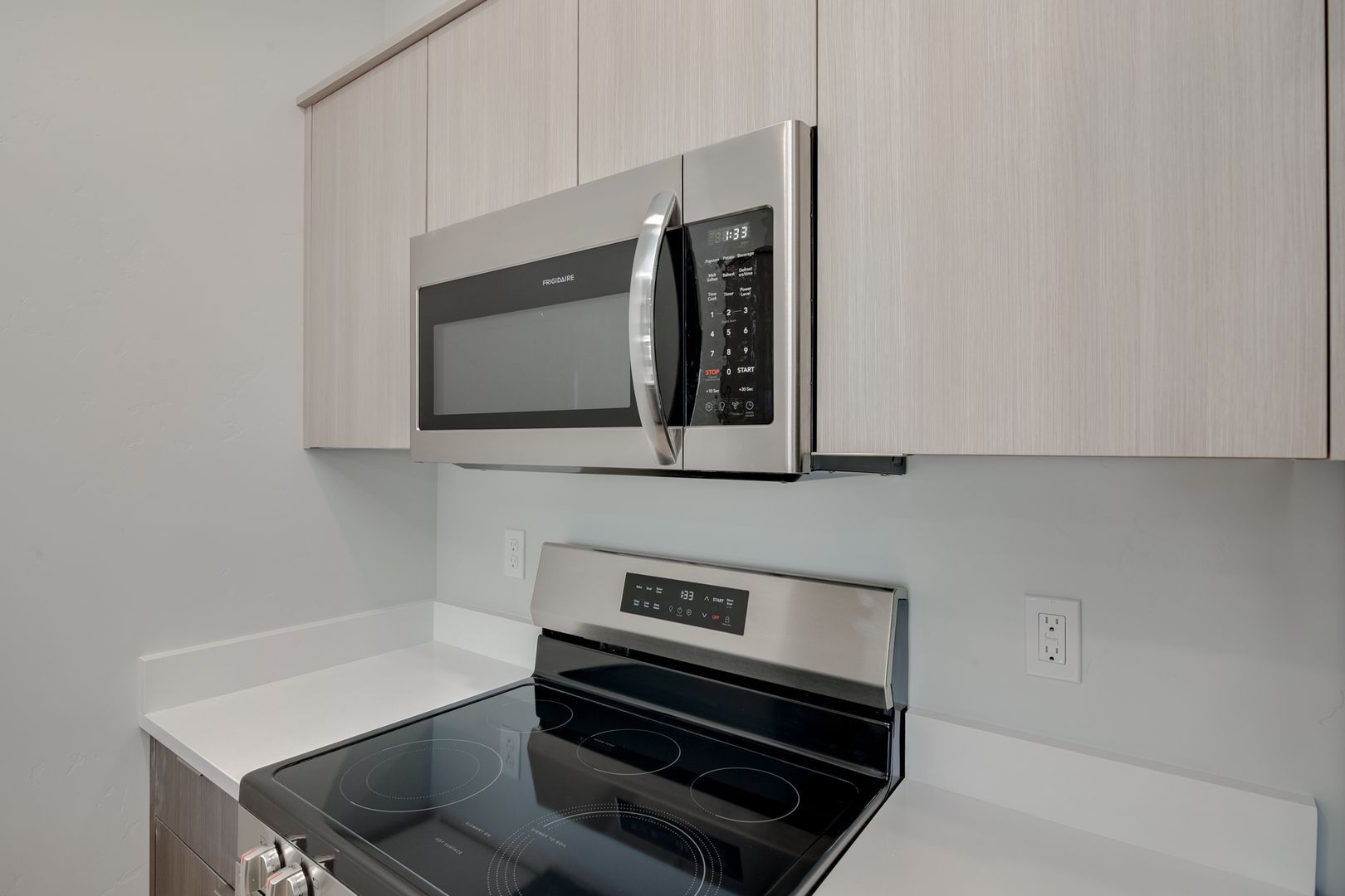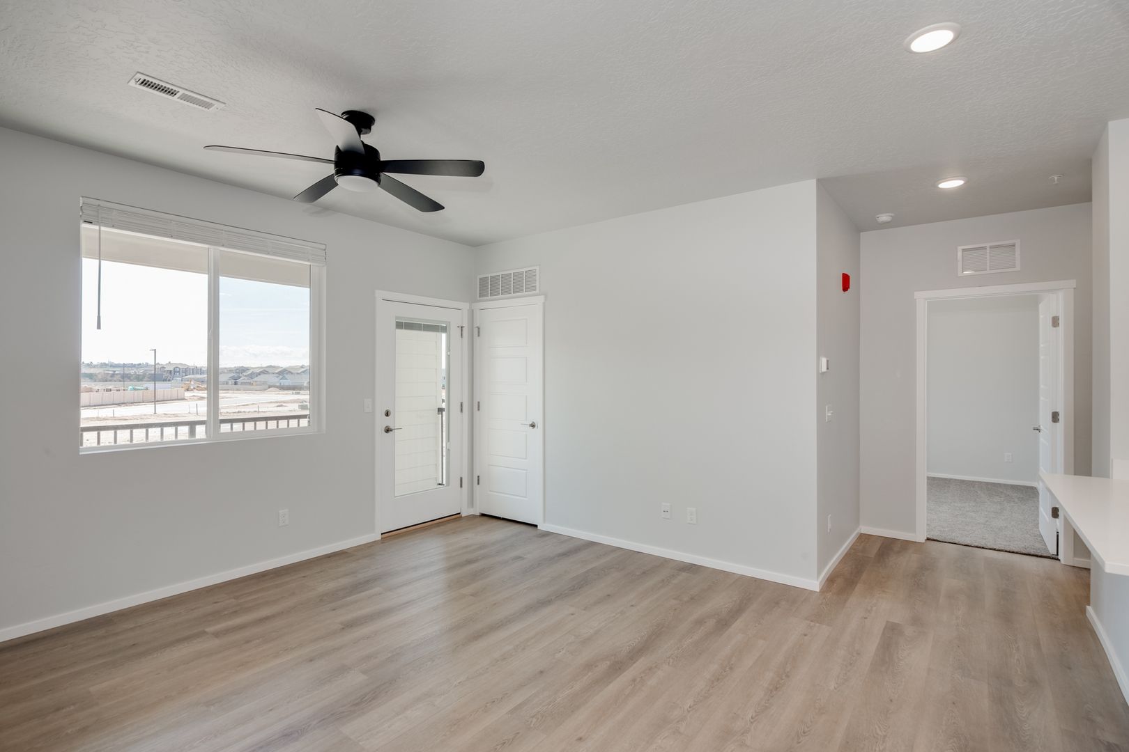 The open-concept kitchen/living room layout is ideal for entertaining guests. Just off the living space, you'll find access to your own enclosed, large private patio with storage.