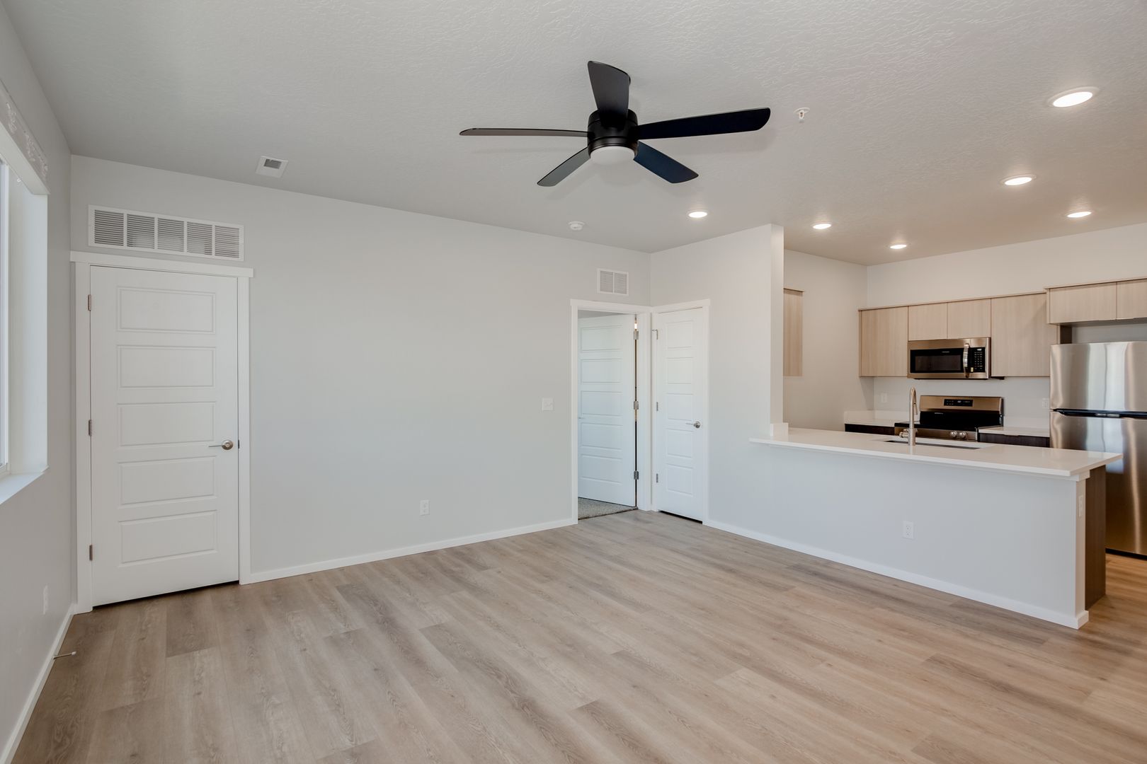 The open-concept kitchen/living room layout is ideal for entertaining guests. Just off the living space, you'll find access to your own enclosed, large private patio with storage.
