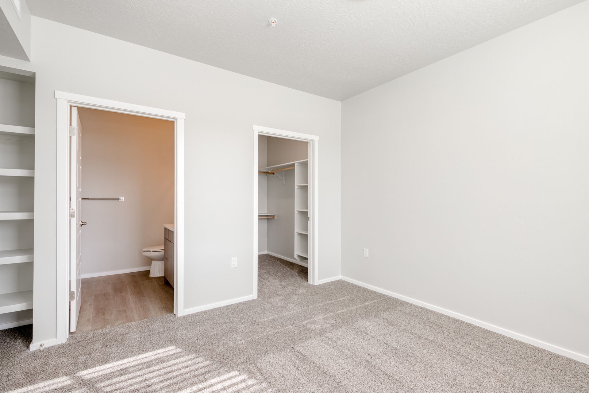 Additional shelving in each bathroom ensures plenty of storage space.